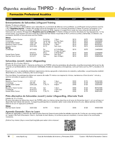 18 www.thprd.org Guía de Actividades de Invierno y Primavera 2026 Tualatin Hills Park & Recreation District