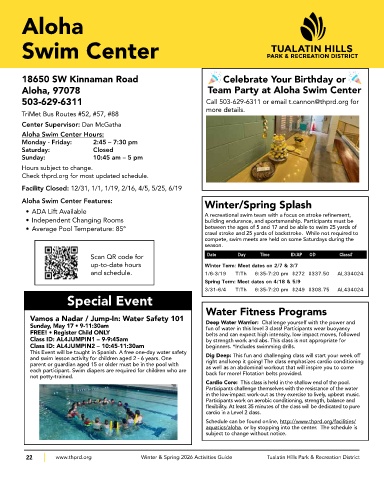 22 www.thprd.org Winter & Spring 2026 Activities Guide Tualatin Hills Park & Recreation District