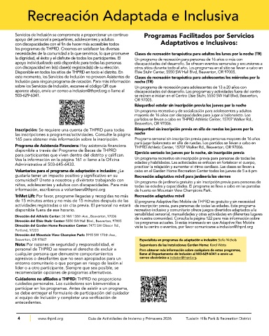 4 www.thprd.org Guía de Actividades de Invierno y Primavera 2026 Tualatin Hills Park & Recreation District