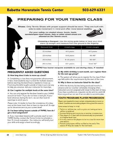 THPRD facility, contact the Tennis Center to schedule a to a higher-level class